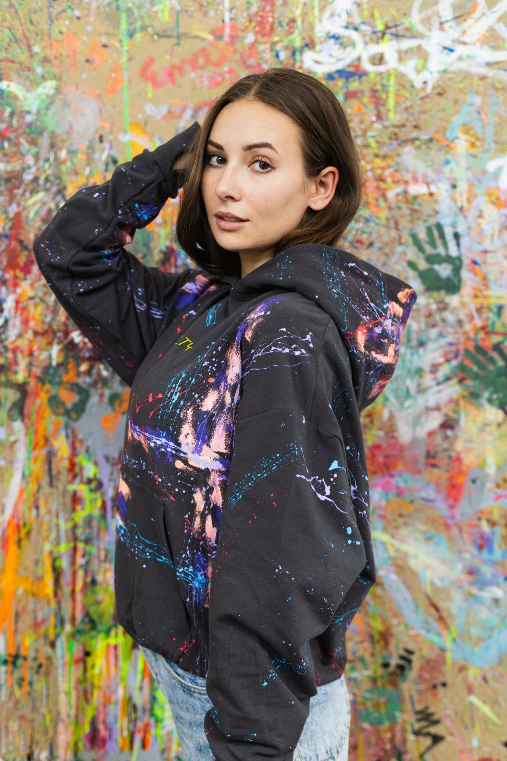 Mikina je vyrobená na Slovensku z prémiovej bavlny a elastanu, ktorá je príjemná, pevná a odolná. Zachováva si tvar a kvalitu aj po dlhodobom nosení, zatiaľ čo maľba zostáva výrazná vďaka použitým trvácnym farbám.