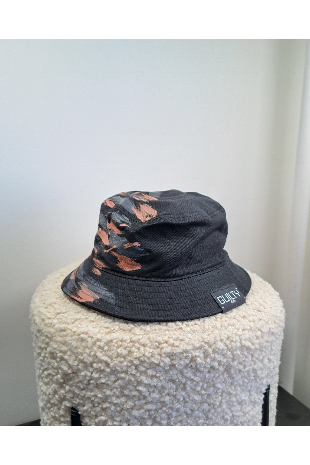 Čierny klobúk GUILTY s hnedo–tmavosivými brush-stroke vzormi (limitovaná edícia)