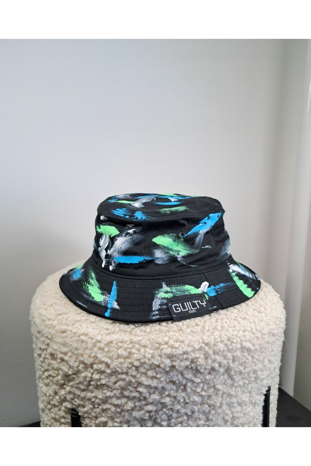 Čierny klobúk GUILTY s modro-zeleno-bielymi brush-stroke vzormi (limitovaná edícia)