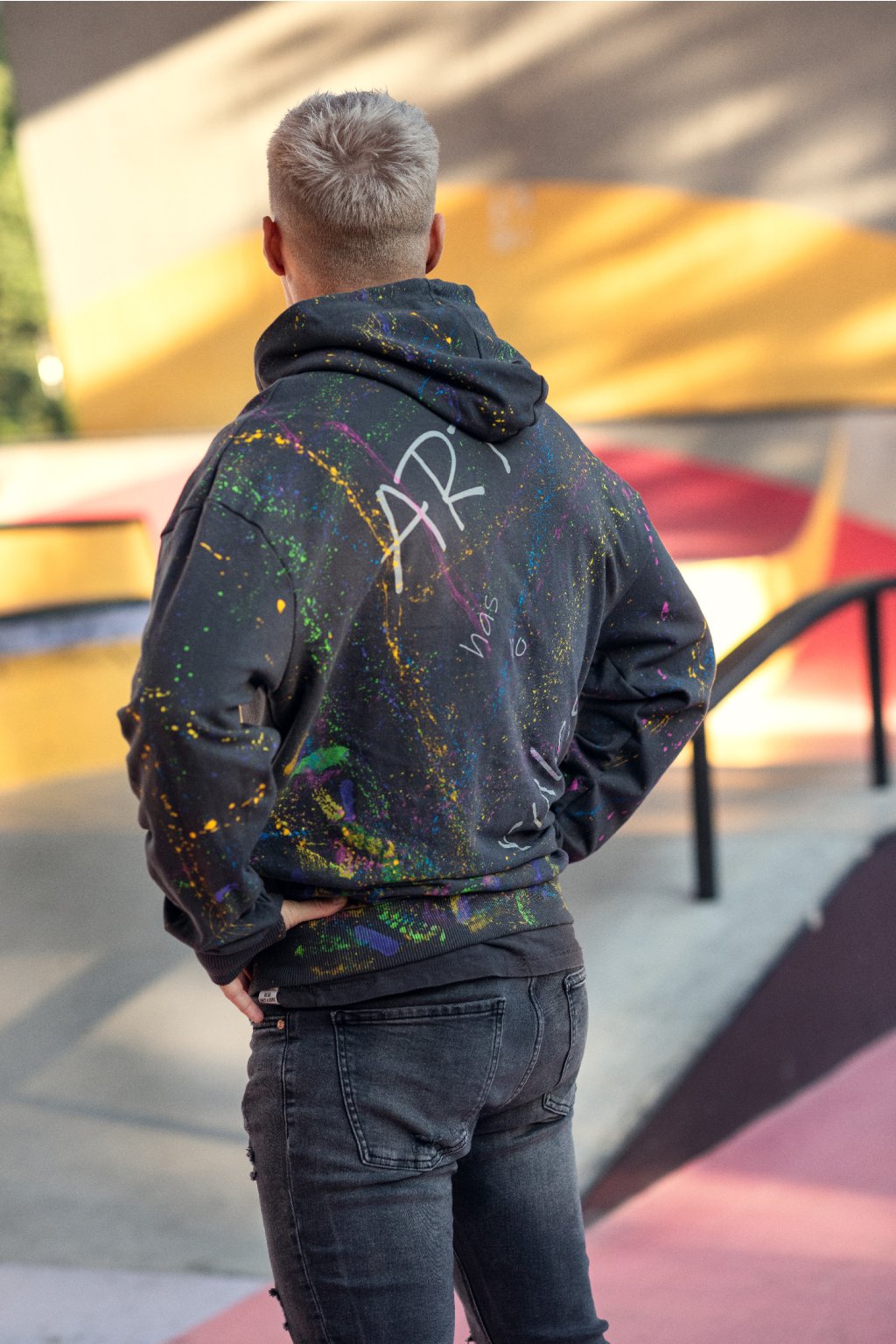 Ručne maľovaná mikina s pestrofarebnými graffiti prvkami.