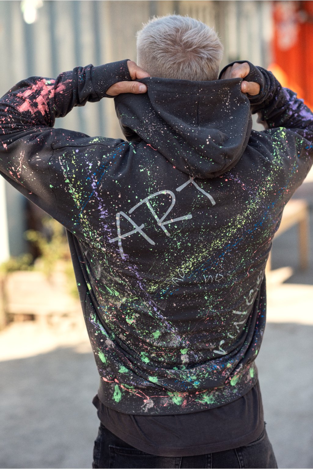 Ručne maľovaná mikina s výraznými neonovými akcentmi.