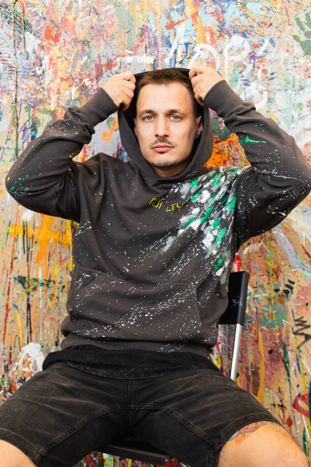 Abstraktný zeleno-biely vzor s dynamickým špliechajúcim efektom dodáva mikine originálny a umelecký charakter. Tento kúsok je súčasťou exkluzívnej limitovanej edície, kde platí – každý kus je jediný na svete.