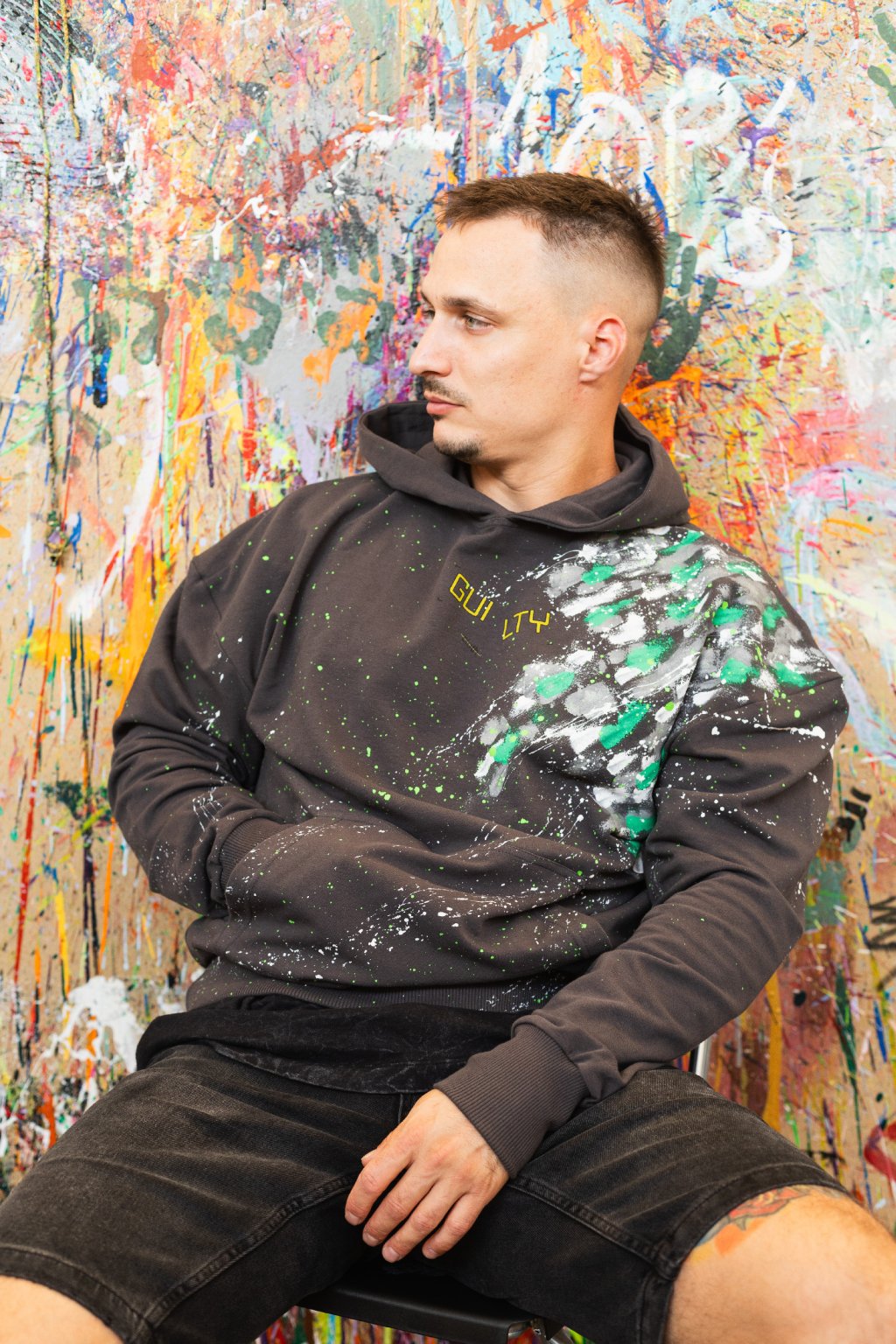 Táto sivá pánska oversize mikina GUILTY je stvorená pre individualistov, ktorí chcú nosiť niečo, čo nikto iný nemá. Každý kus je ručne farbený a maľovaný, takže vzor na tvojej mikine bude úplne unikátny – druhý taký na svete neexistuje.